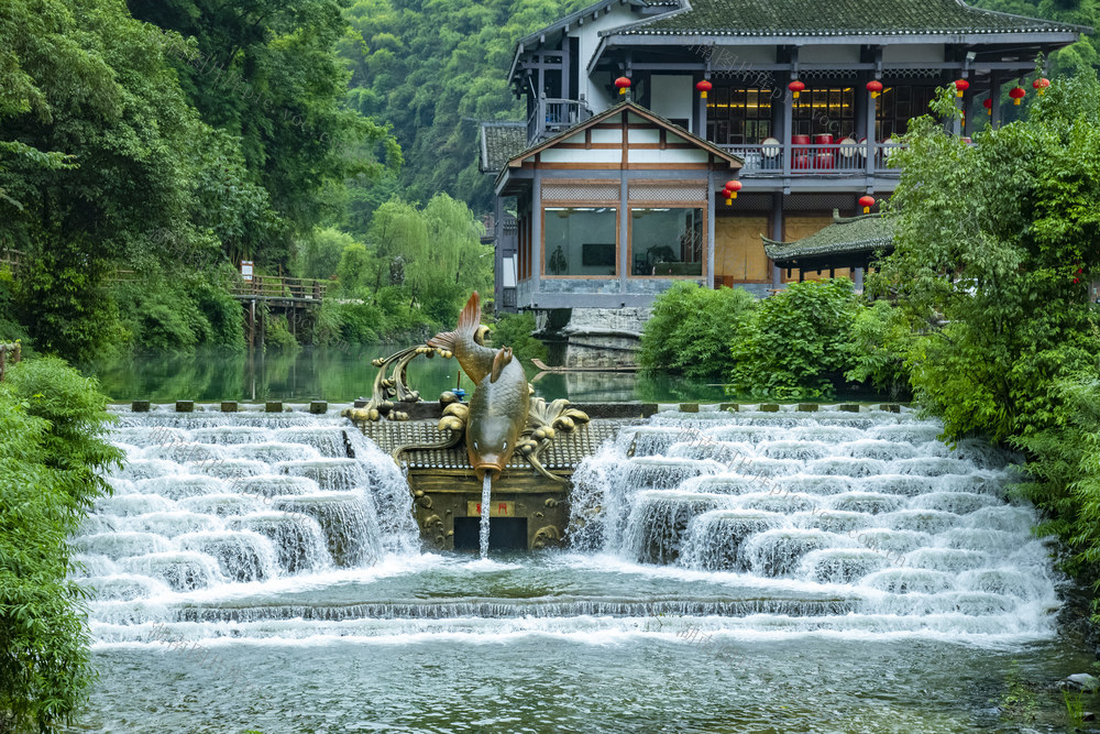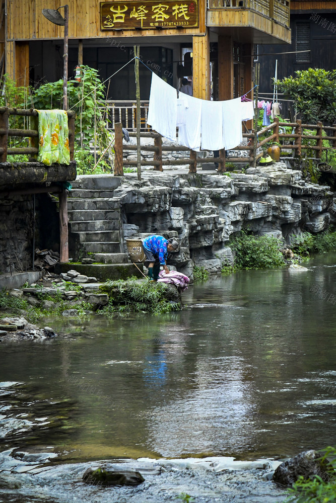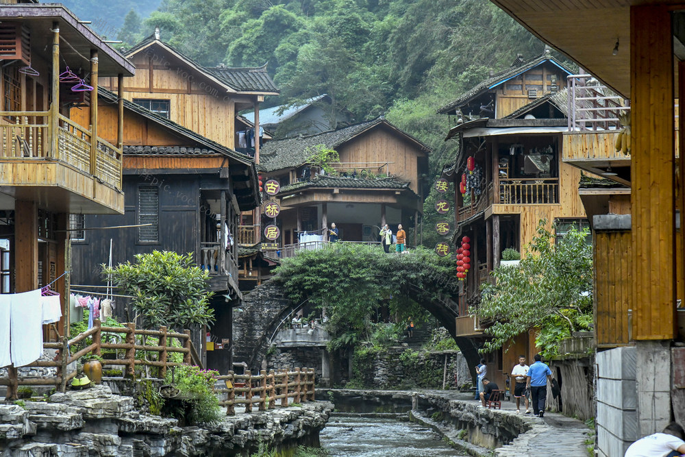德夯,一座神仙栖息的苗寨,藏于莽莽大山,隐于人间烟火。景区内,溪流纵横,峡谷深壑,瀑布飞泻,群峰竞秀,一幢幢吊脚楼高低错落,一条条石板路绵延不绝,一座座石拱桥点缀其间,九龙溪穿寨而过,从山里人家和青山绿意间涓涓向前,无不彰显着千年古韵的氛围感。