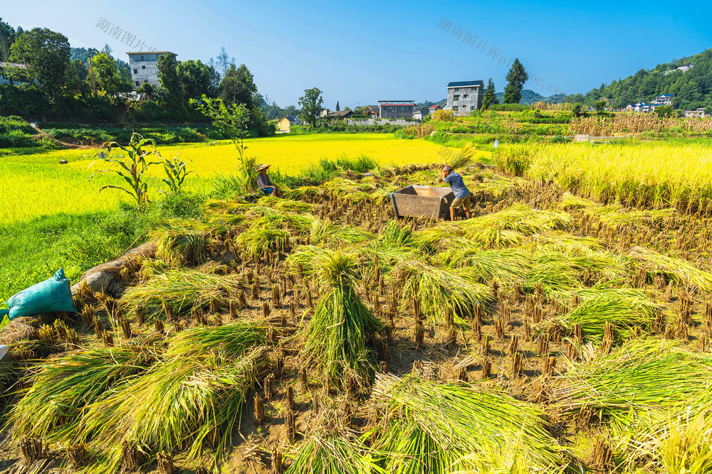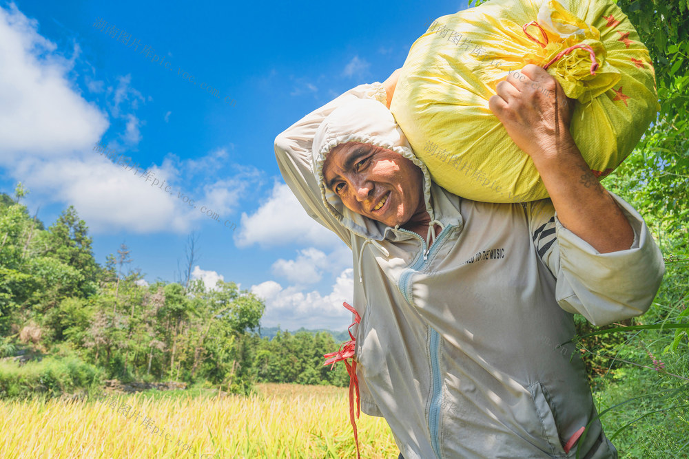搬运稻谷。梁永鸿 摄