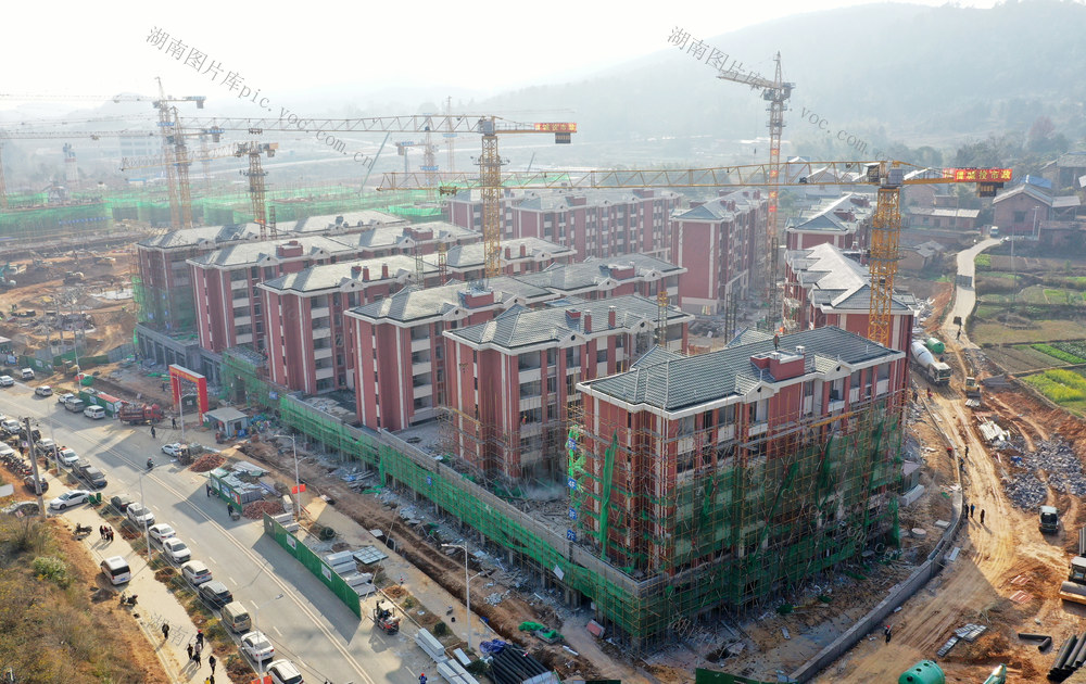 12月31日,资兴市兴宁集中安置点一期项目如火如荼施工。(李科 李煊 摄)