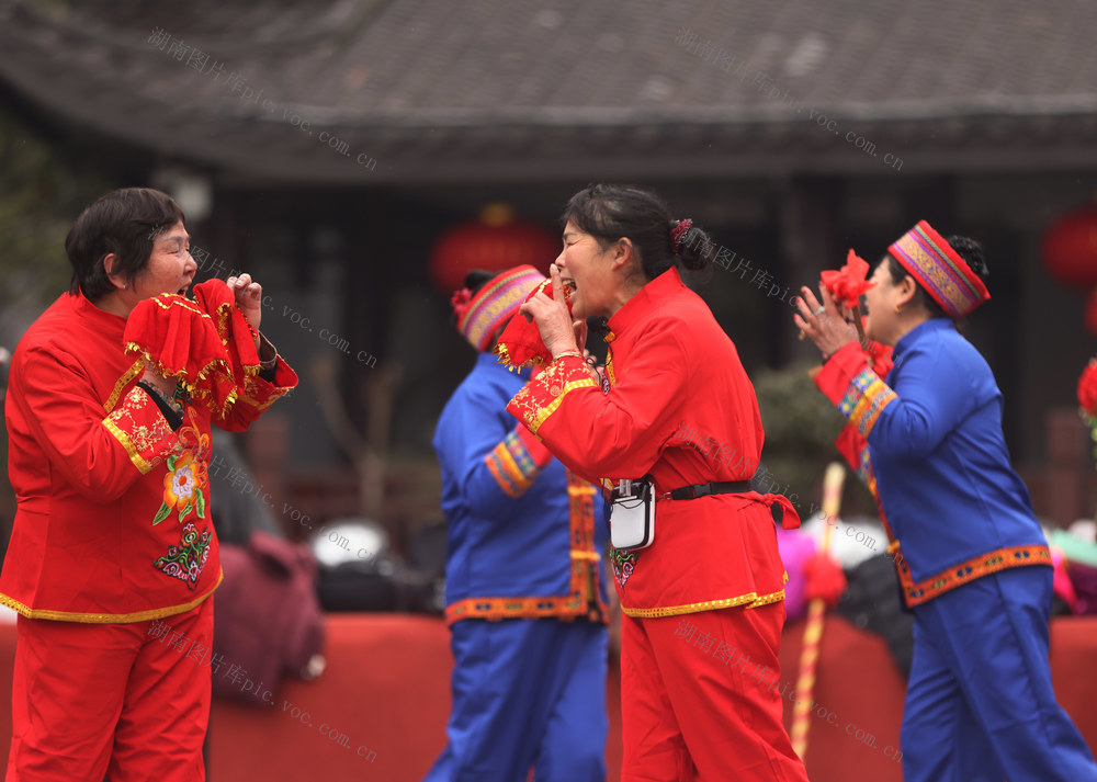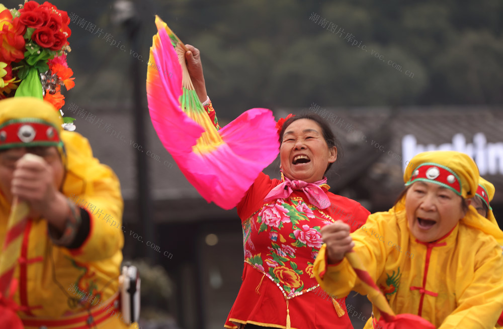 2025年2月12日,在张家界市武陵源区吴家峪门票站广场,当地群众表演民俗节目。 吴勇兵 摄