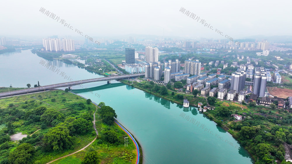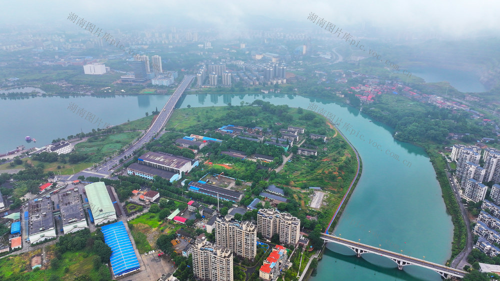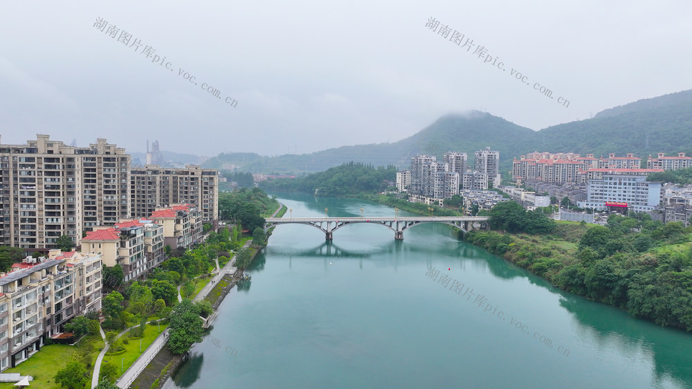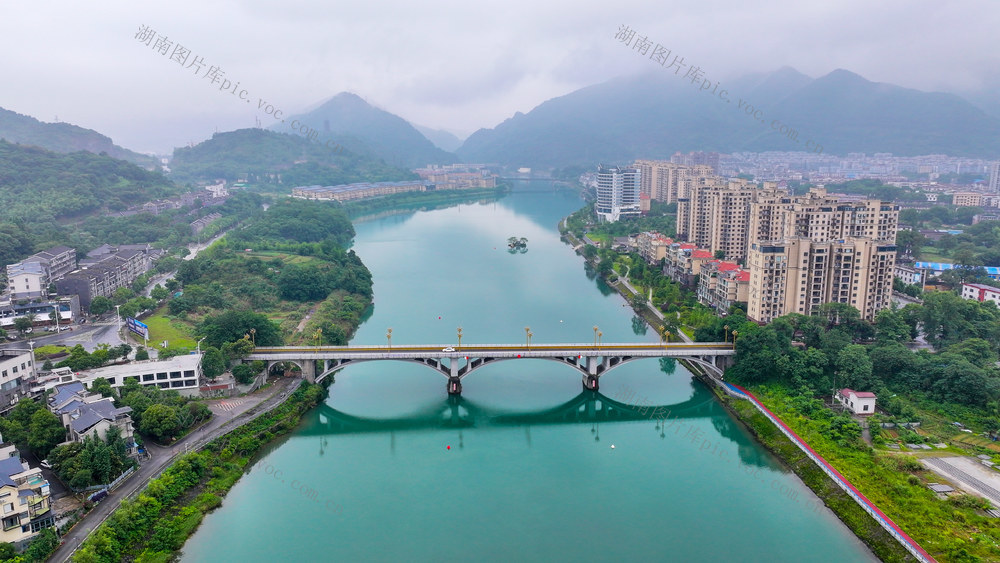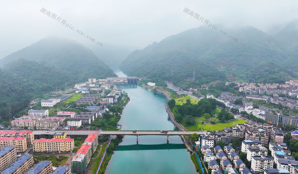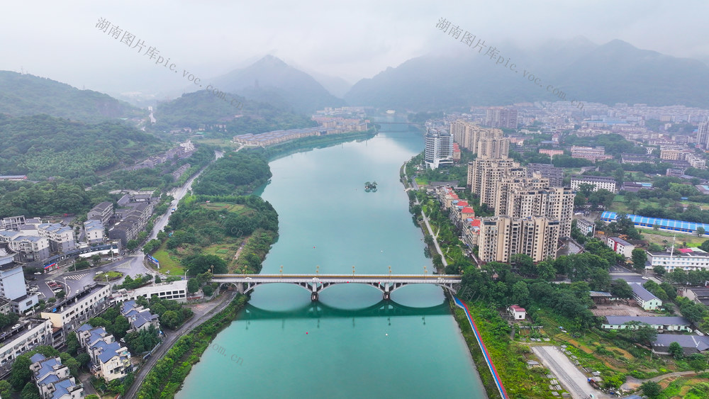 2025年6月2日,航拍湖南省资兴市小东江两岸积翠叠嶂,云雾缥缈,碧水如镜,青山、桥梁、高楼、绿树倒映江中,构成了一幅美丽的烟雨江南小城画卷。