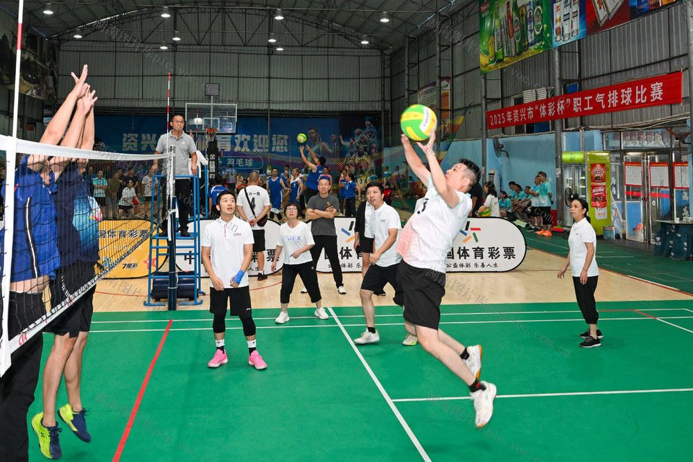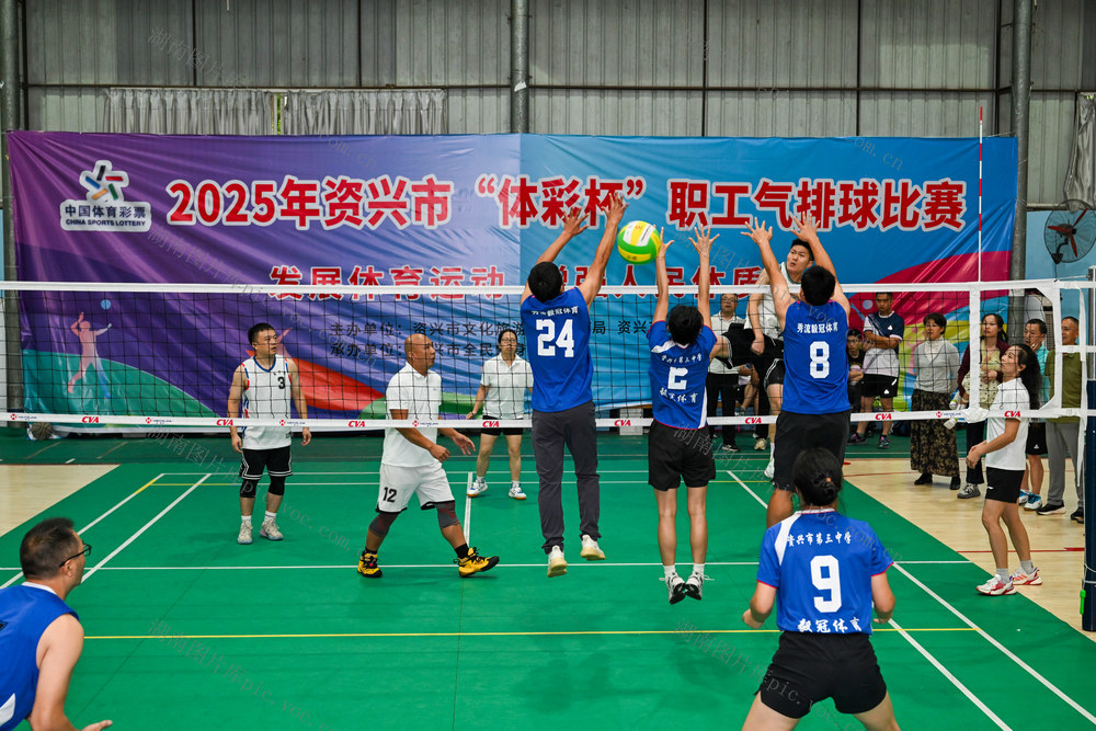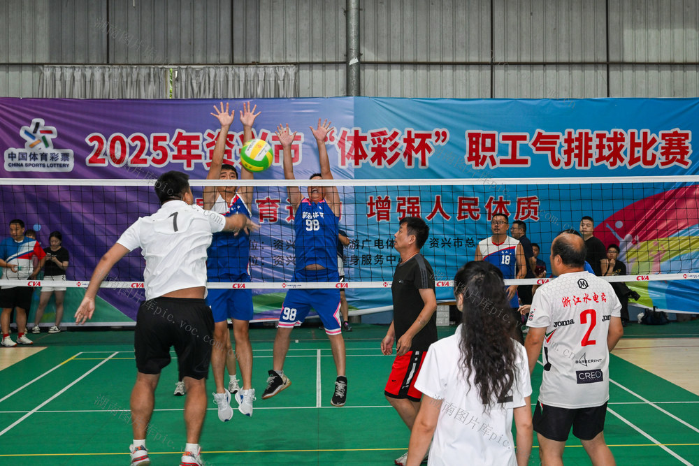 2025年9月20日,资兴毅冠体育馆,干部职工在进行气排球比赛。何洪海 文尚泽 摄