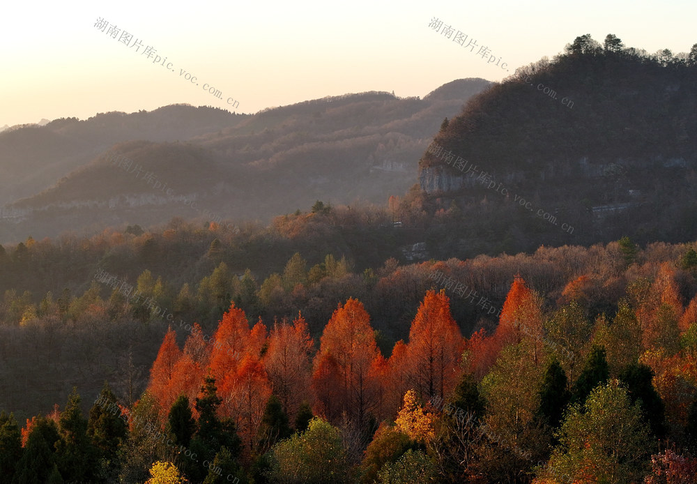 2025年11月28日,冬日的湖南张家界国家森林公园天子山景区,层林尽染,夕阳辉映下的绵延峰林宛如一幅水墨丹青画卷映入眼帘,如梦如幻、美不胜收。吴勇兵 摄