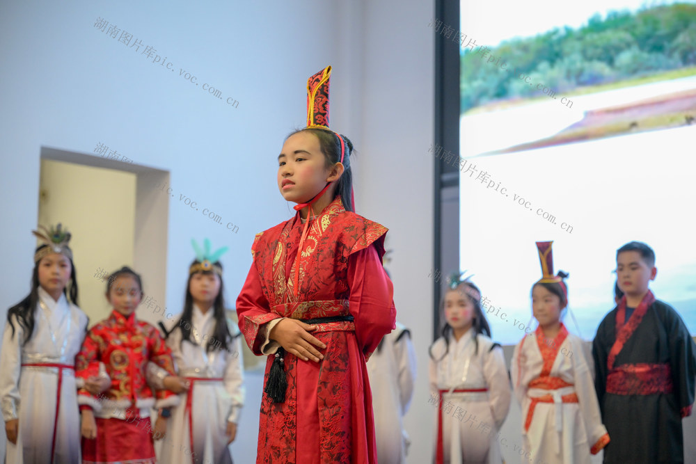 2025年12月31日,资兴市图书馆,学生在表演课本剧《西门豹治邺》。