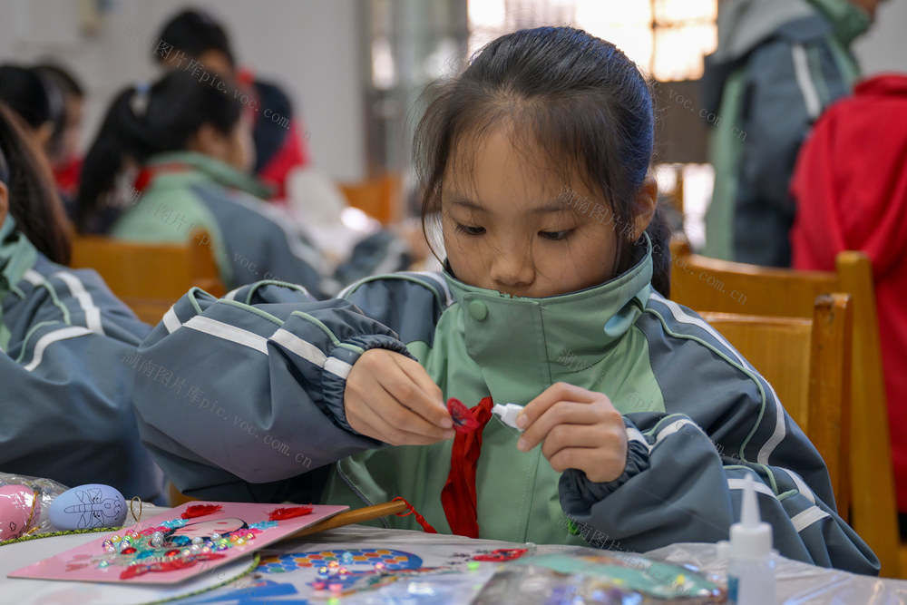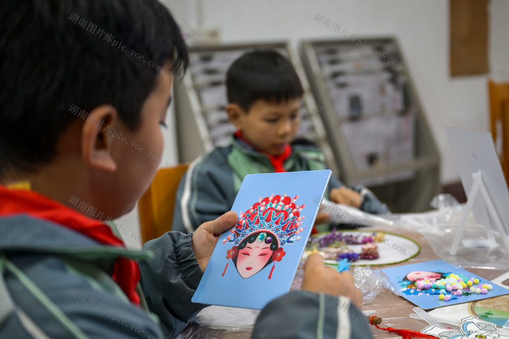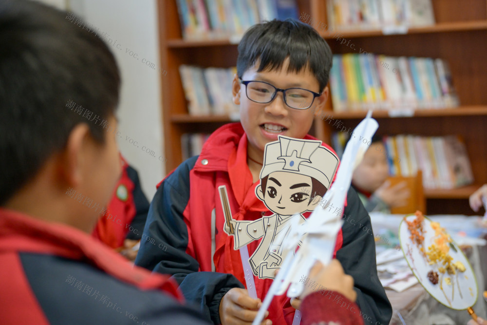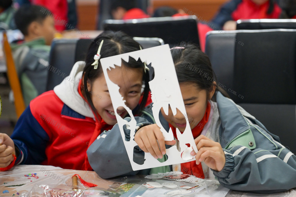 2025年12月31日,资兴市图书馆,学生在制作手工。