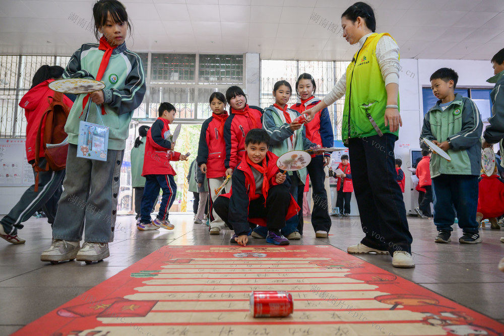 2025年12月31日,资兴市图书馆,学生在猜古诗词。