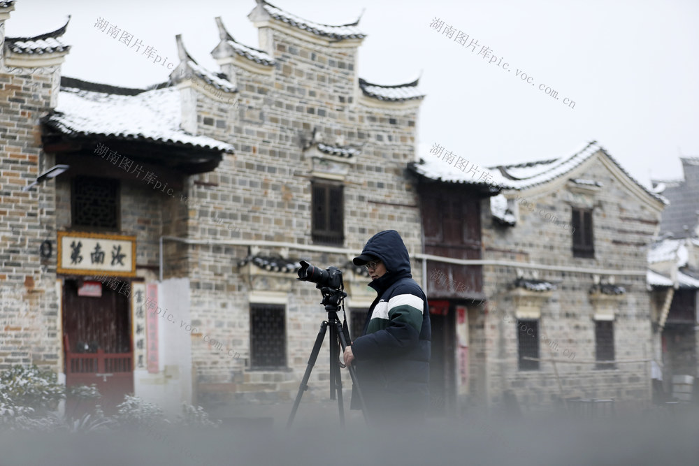 1月21日,一名摄影爱好者在资兴市三都镇辰南村拍摄雪景。(李科 李煊 摄)