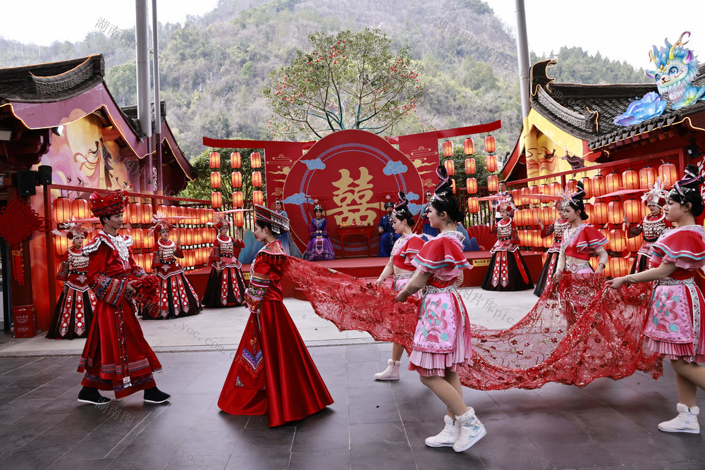 2026年2月13日,湖南张家界市武陵源区千古情景区艺术团的演员在排练节目。吴勇兵 摄