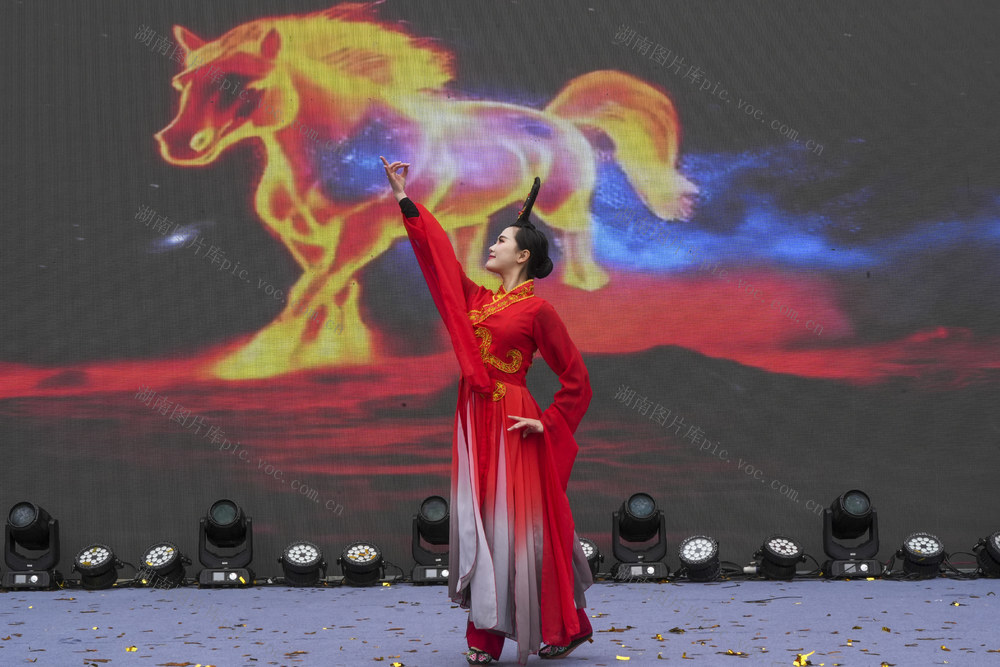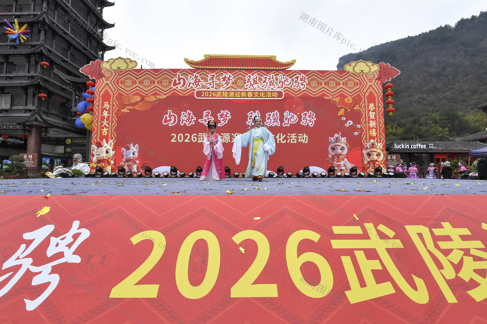 2月17日,在湖南省张家界市武陵源区标志门广场举行的新春文化活动表演。 邵颖 摄