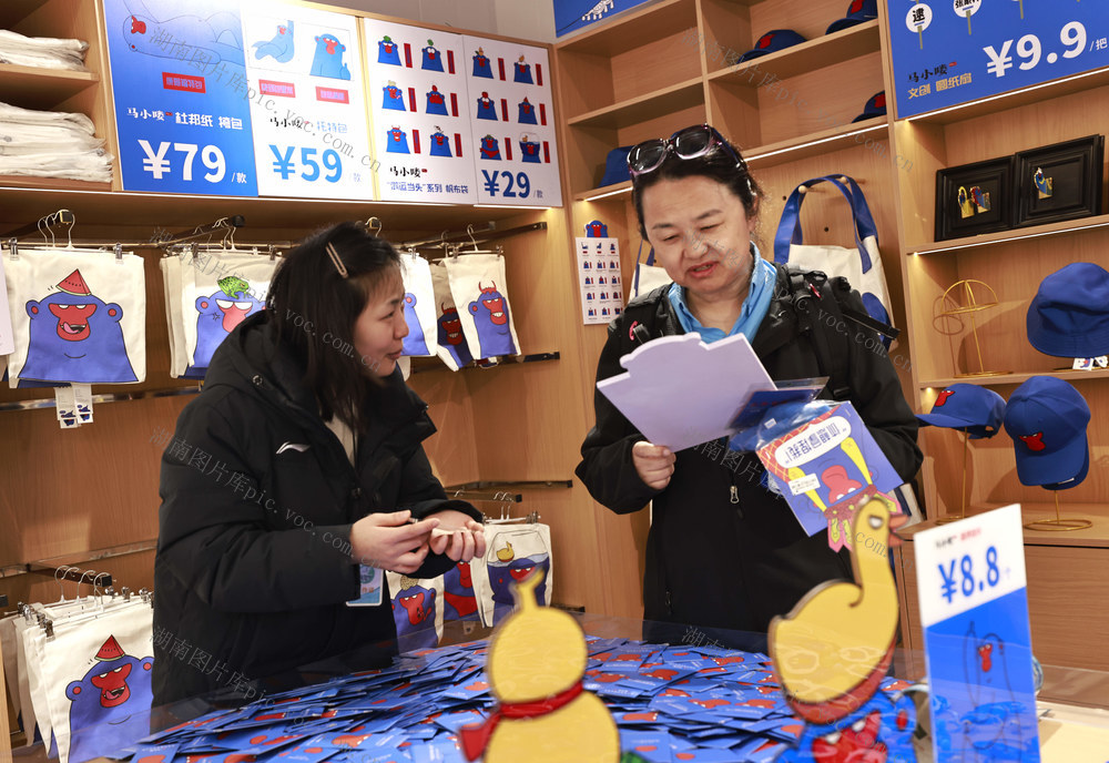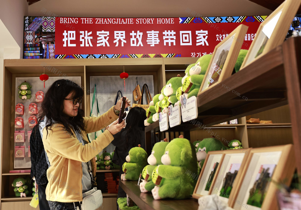 2026年2月21日,游客在湖南张家界国家森林公园旅游文创店选购商品。吴勇兵 摄