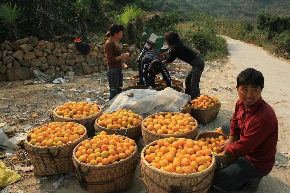 2007年10月20日,资兴市清江镇青草村的村民收获蜜桔,等待商贩收购。当地出产的蜜桔在东江湖库区内质量上乘,多数销往外地。