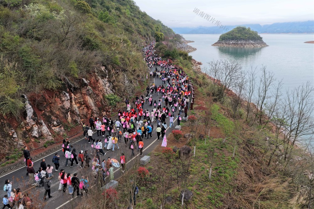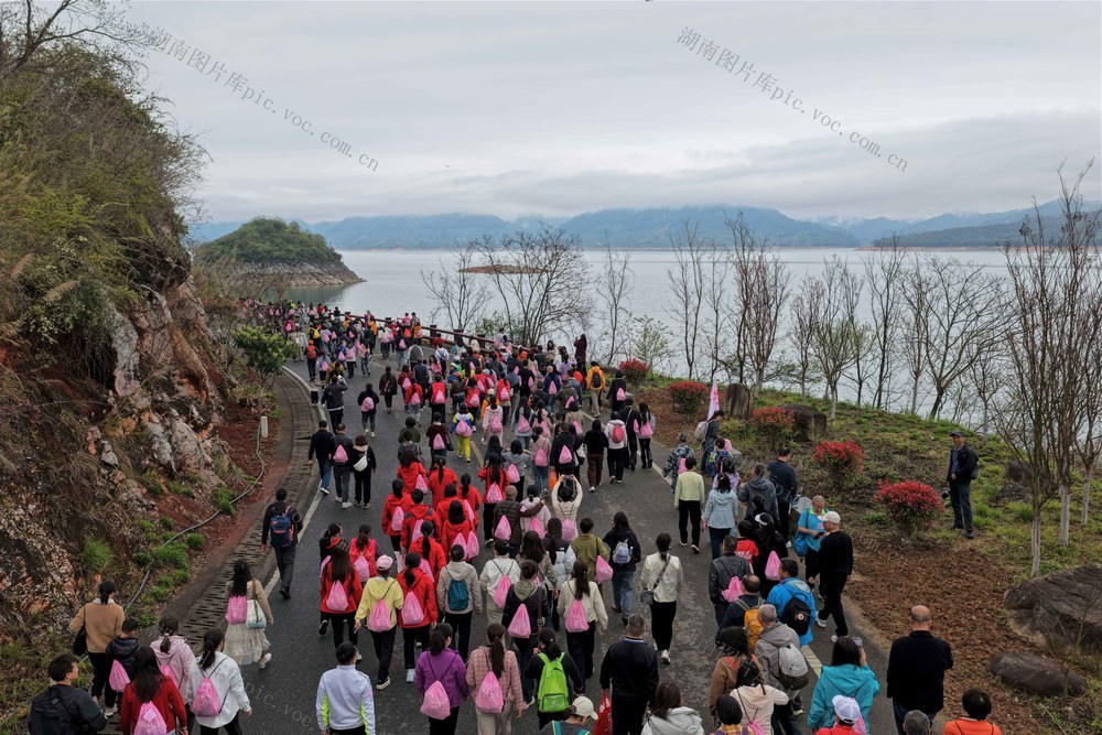3月28日,资兴市白廊镇环湖公路,选手在参加徒步活动。李科 何洪海 摄