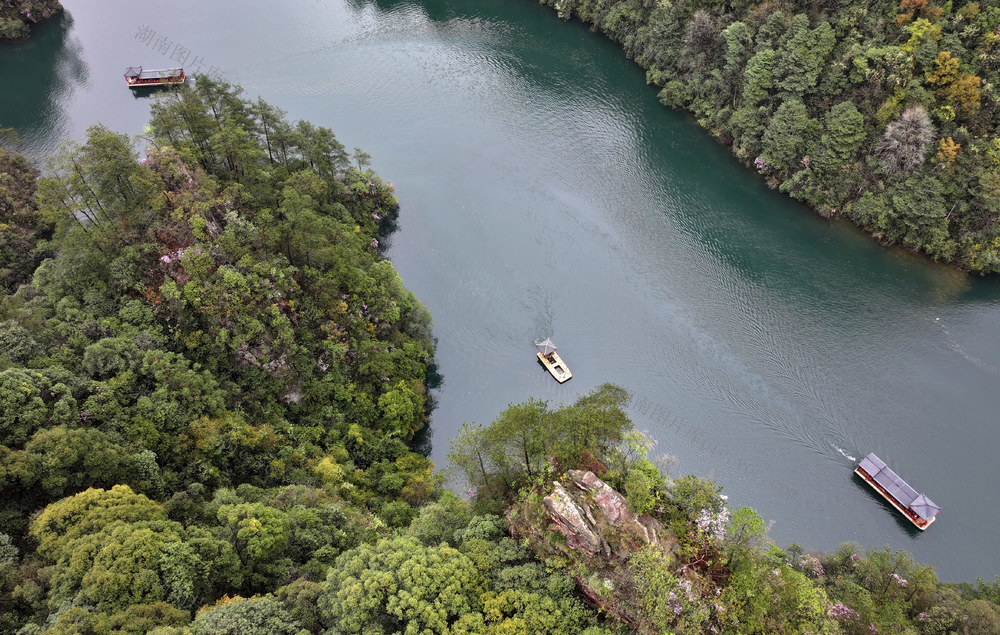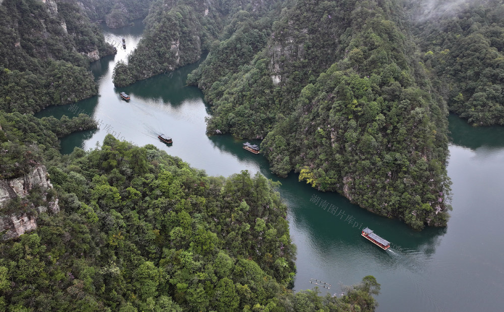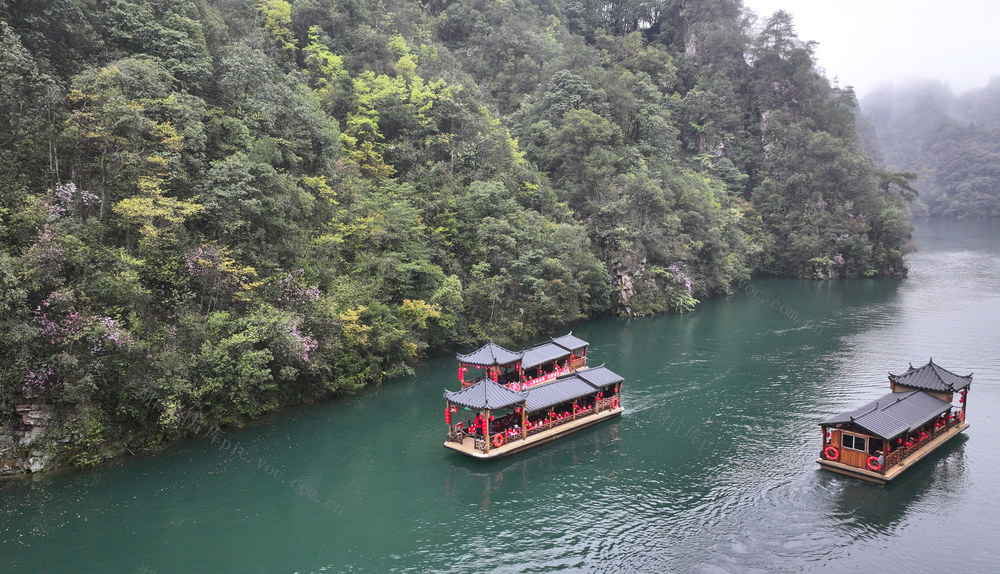 2026年3月30日,游客在张家界市武陵源区宝峰湖景区乘船游览。 吴勇兵 摄