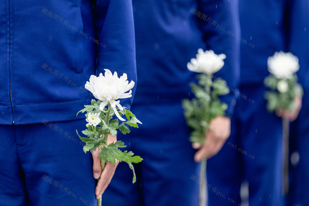 2026年3月31日,湘西州吉首市烈士公园,消防员代表在烈士纪念碑前手持鲜花缅怀先烈。 彭璟 摄