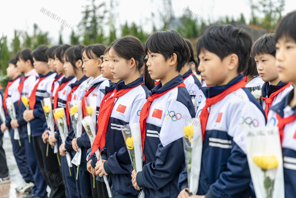 2026年3月31日,湘西州吉首市烈士公园,师生代表向烈士敬献鲜花。 彭璟 摄