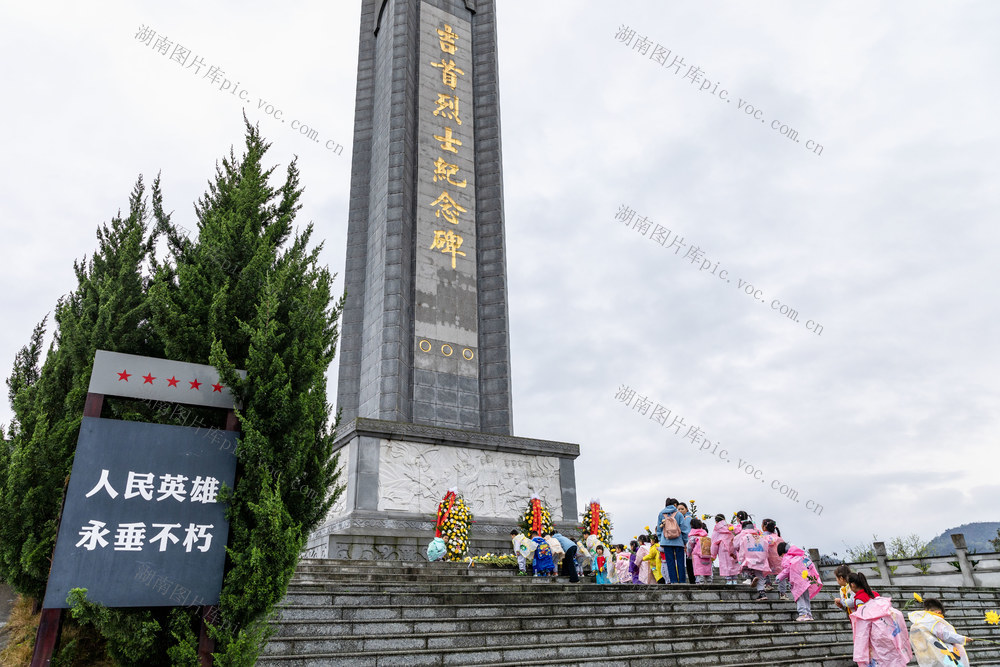 2026年3月31日,湘西州吉首市烈士公园,学生代表在烈士纪念碑前缅怀先烈。 彭璟 摄