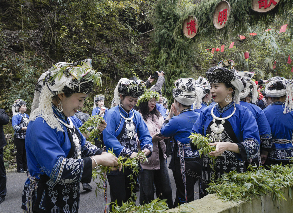 4月5日,丹青清明歌会在湘西州吉首市丹青镇清明河畔热闹开唱,十里八乡的苗胞齐聚河畔,插柳追思、载歌载舞,飞歌婉转、鼓点铿锵,这独属于湘西的清明仪式感,满是温情与传承的力量。 陈明来 摄