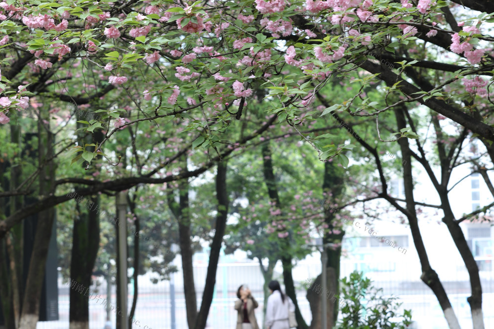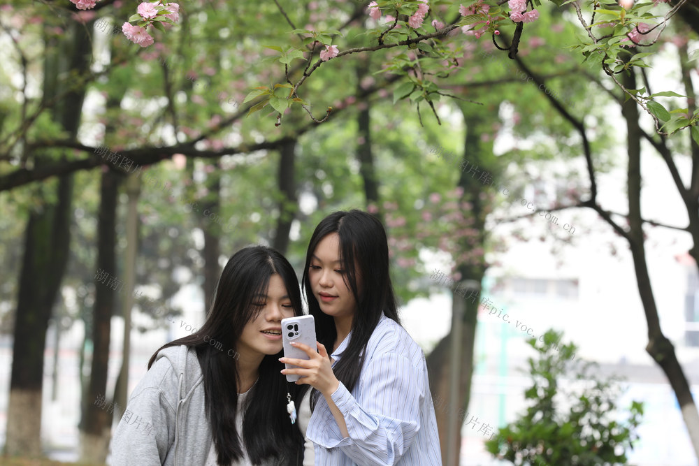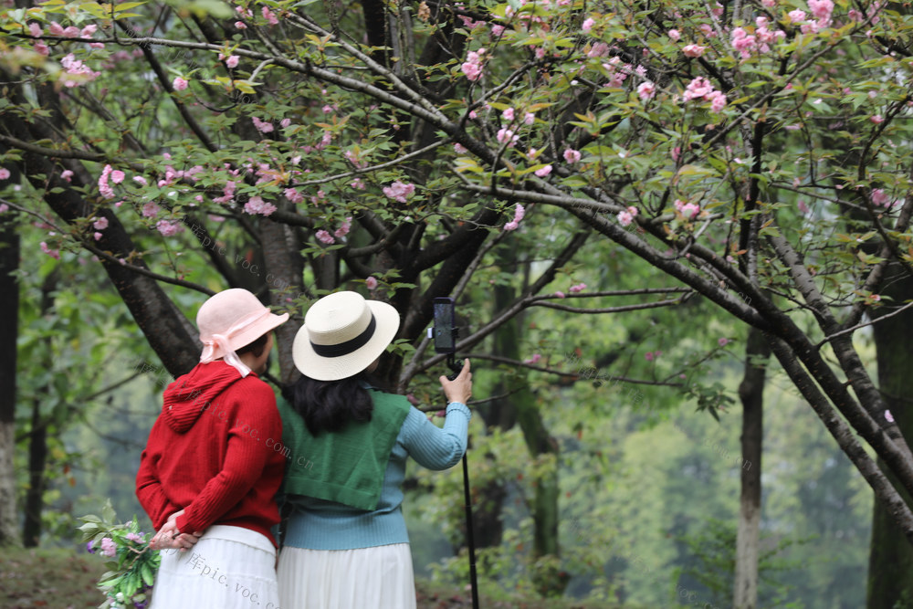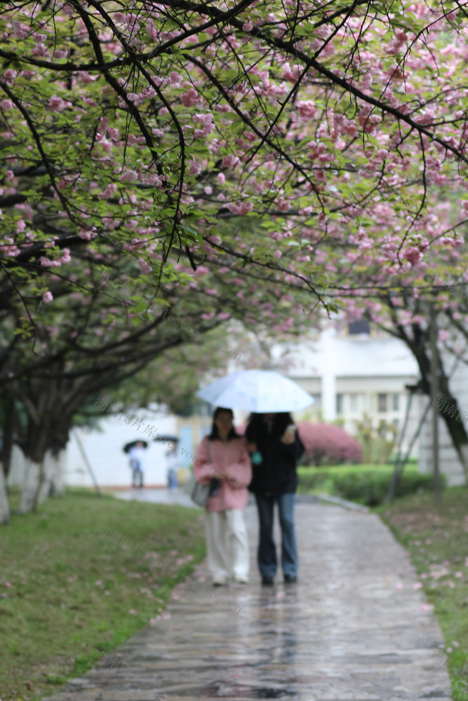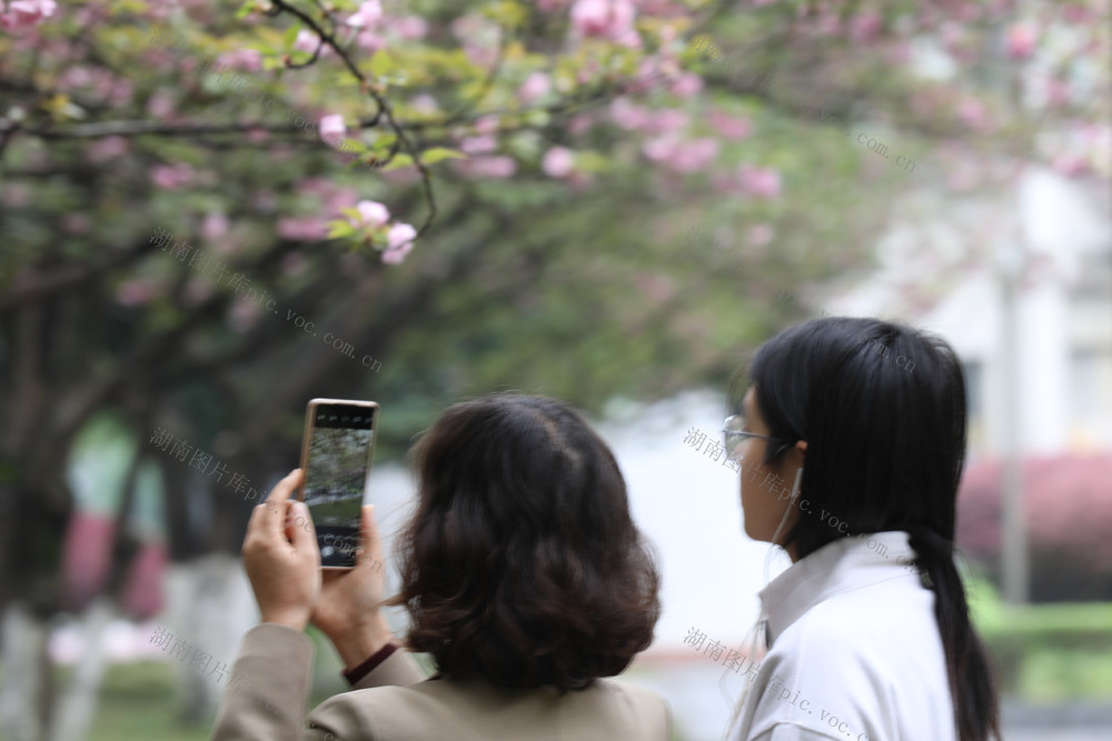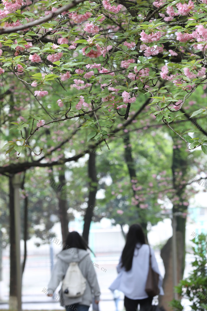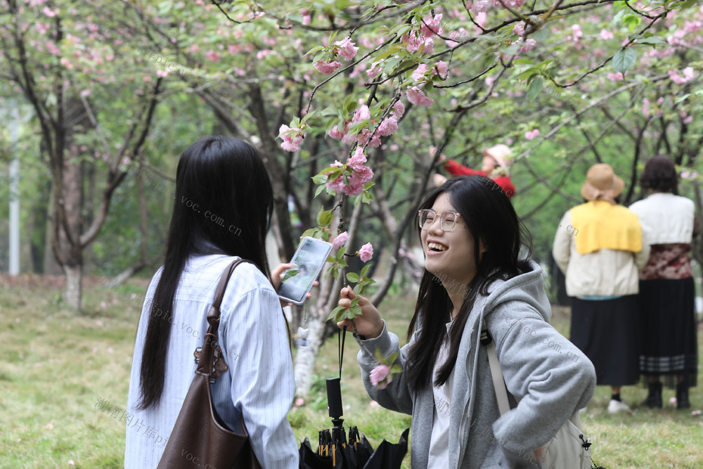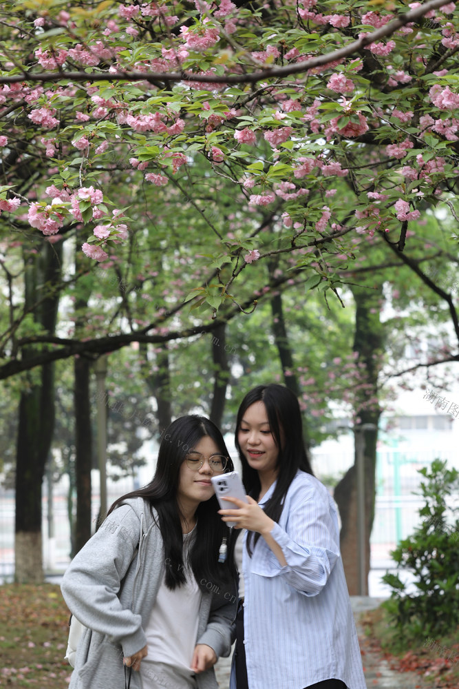 4月8日,在湘西土家族苗族自治州吉首大学,市民在樱花园里赏樱拍照。彭彪 摄