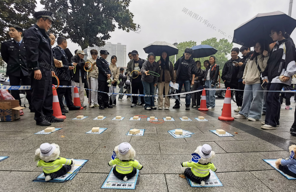 4月8日,吉首大学吉首大学(砂子坳校区),学生们兴致勃勃地参与“反诈套圈”趣味游戏。刘丹 姚方 摄影报道