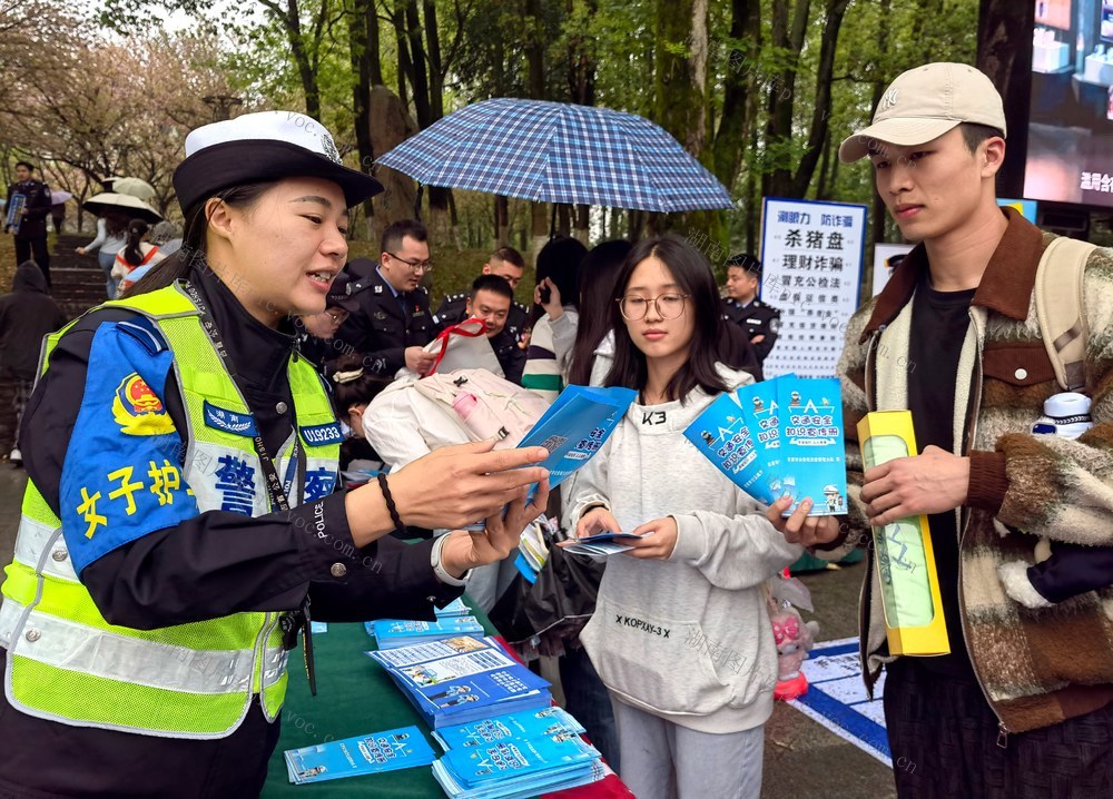 4月8日,吉首大学吉首大学(砂子坳校区),民警向学生讲解反诈知识。刘丹 姚方 摄影报道