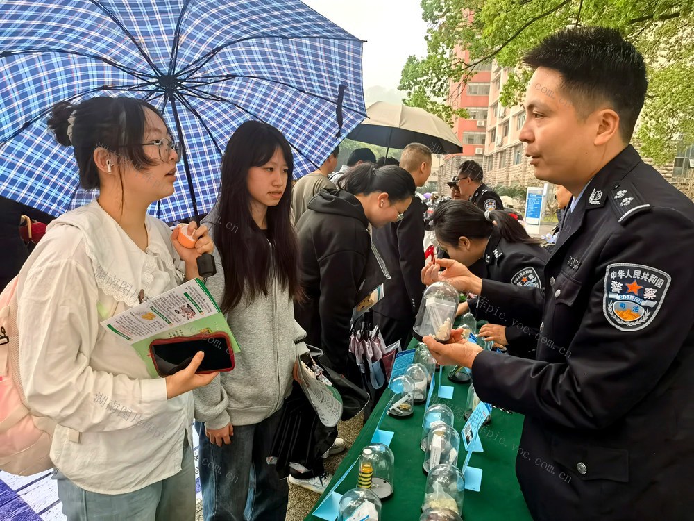 4月8日,吉首大学吉首大学(砂子坳校区),民警为学生讲解禁毒知识。。刘丹 姚方 摄影报道