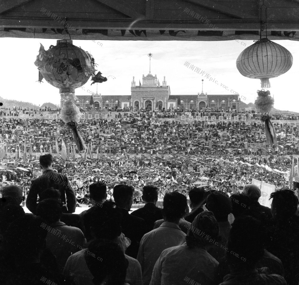 1957年9月20日,100多万各族人民欢欣鼓舞,庆祝湘西土家族苗族自治州成立。图为大会会场展开了丰富多彩的文艺表演。张云龙 摄