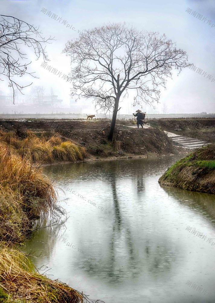 3月3日,伏溪山水田原小韵。雨中清晨的小溪、小树、小狗,小景,以及日出而出,日落而息,不辞辛劳,辛勤付出的村民,和谐而有机的构成一幅伏溪田园小韵。 雷振梁 摄