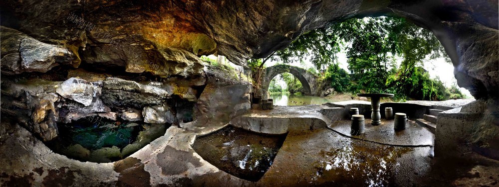 5月12日,千古奇观伏溪桥伏婆井。伏溪古桥(中)与伏婆古井(左)全景图,承载与流淌着渊远流长千古的一个个传奇故事。 雷振梁 摄
