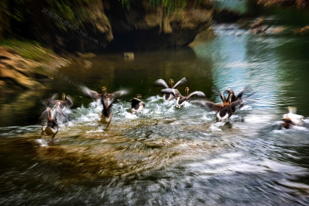 5月14日,伏溪群鹅展翅腾飞景观。 雷振梁 摄