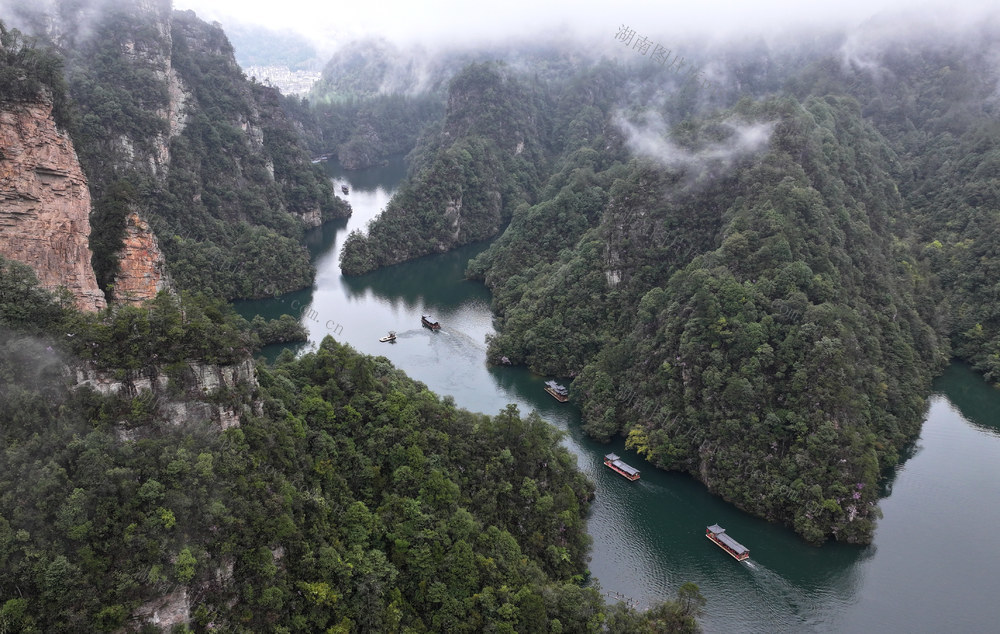 2026年3月30日,游客在张家界市武陵源区宝峰湖景区乘船游览。 吴勇兵 摄