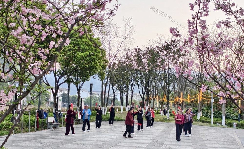 3月31日傍晚,市民在张家界市武陵源区喻家嘴公园健身休闲。吴勇兵 摄